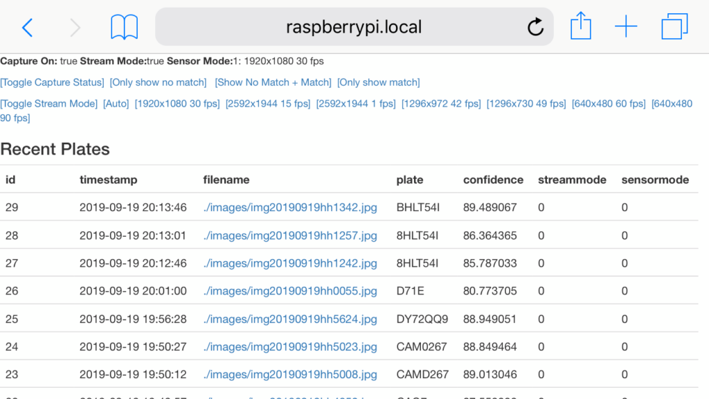 On the Pi 3, it takes between 8 and 800 ms to capture a photo with the Pi Camera, and another 7-8 seconds to run the OpenALPR license plate recognition process. I haven’t looked into optimizing this, but I would be curious to see how fast this could get by adding a processor optimized for these tasks, like an Intel Neural Compute Stick.