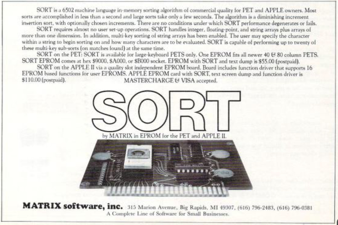 SORT algorithm on EPROM for Apple and Commodore Pet