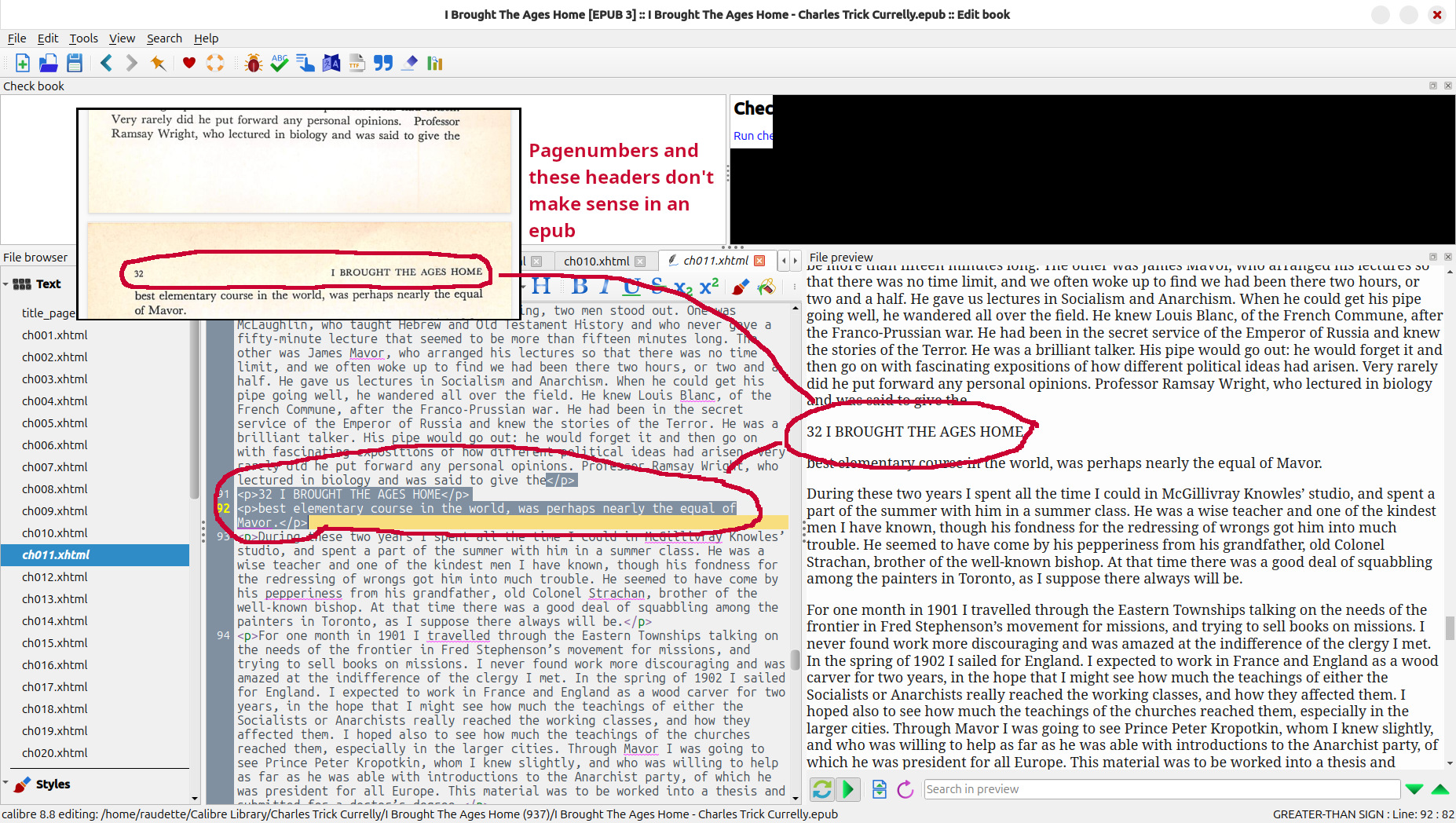 When I digitized Charles Trick Currelly’s I Brought The Ages Home, I wanted to share it, and I wanted any potential readers to have a great reading experience. I used Calibre’s built-in ebook editor to: