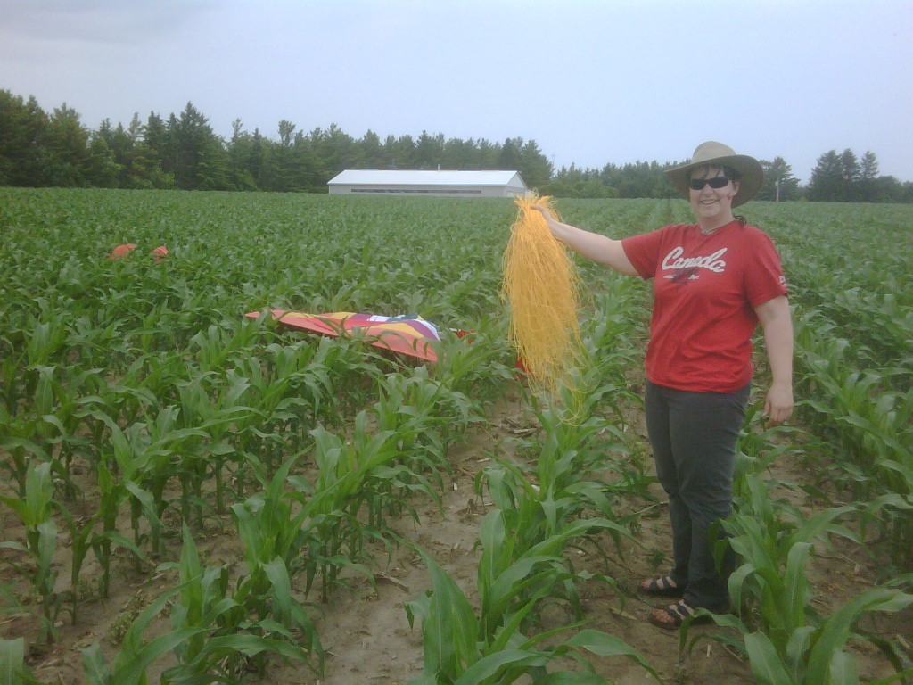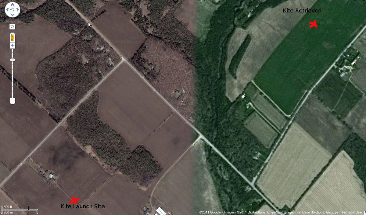 It came time to reel the kites back in. It was impossible. It took incredible strength to pull the kites in. After about 10 minutes of pulling, the line snapped, and we watched the kites drift away. Jan and I hopped into my car to chase them down. Fortunately, the crops were still only about a foot high, and we actually saw the kites land in a neighbouring field about 3 km away. We recovered the kites and camera, intact.