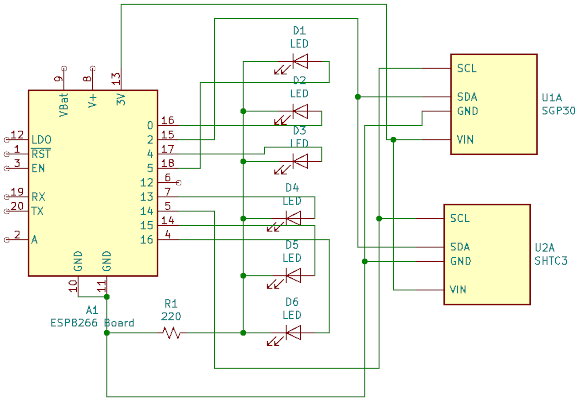 - Compare various sensors. As we’re just interested in fresh air for this application, I believe an CO2 equivalent (CO2eq) sensor, like the Sensirion SGP30 used here, is adequate, but I would be interested in comparing results with an actual CO2 sensor (like the Sensirion SCD30/SCD40) and a calibrated, commercial grade device like those sold by co2meter.com.