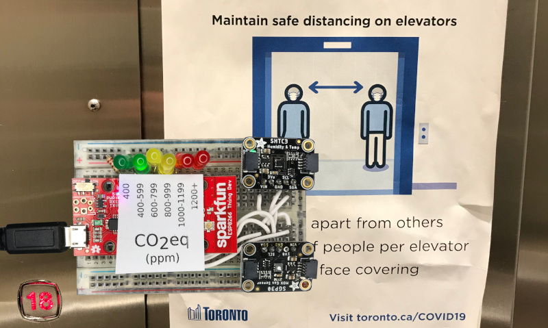 Inexpensive CO2eq Sensor on Prototype Board in Elevator