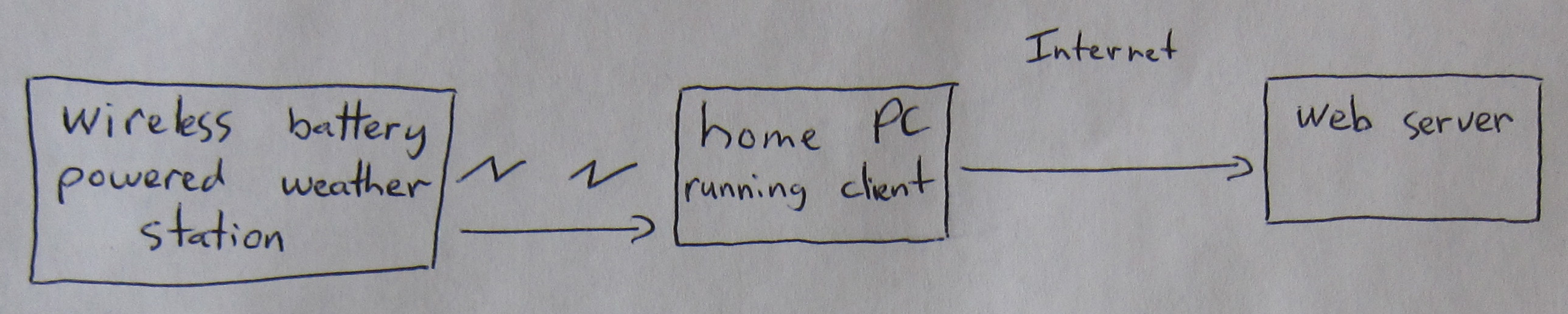 On my home PC, I have a client application that listens for the broadcasts from the weather station. When a reading is received, it makes a web service call to upload the weather readings to a server I have hosted on Amazon EC2.