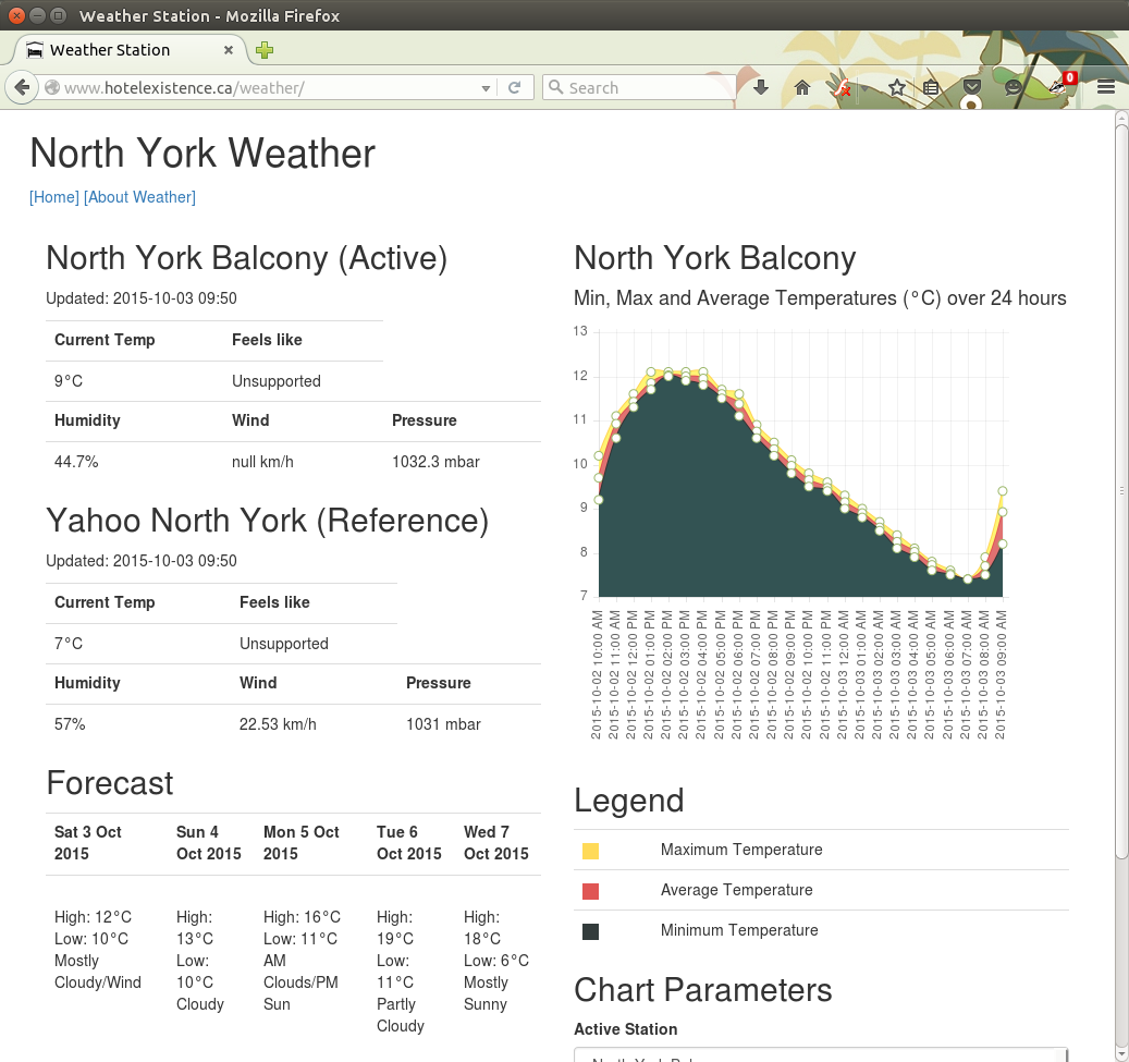 Check it out at http://www.hotelexistence.ca/weather/. It is currently reporting the weather readings from my North York balcony.