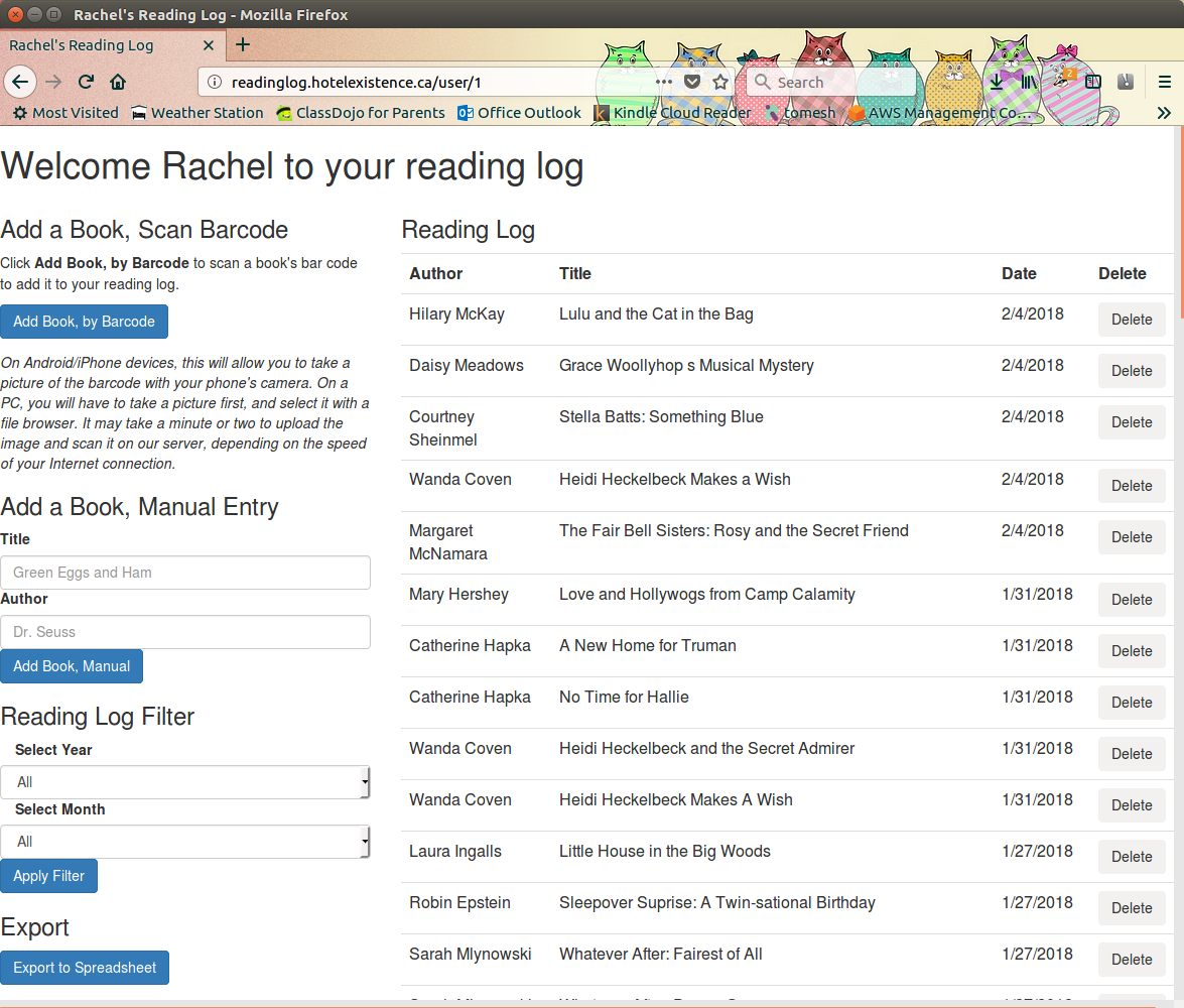 I thought if I reduced the effort required to maintain the reading log, they’d be more likely to track the books they read. I created a website where, using a smart phone, they could just take a picture of the bar code on a given book. The website would read the bar code, and make a call to the Google Books API to retrieve the book title and author, and add it to the reading log.