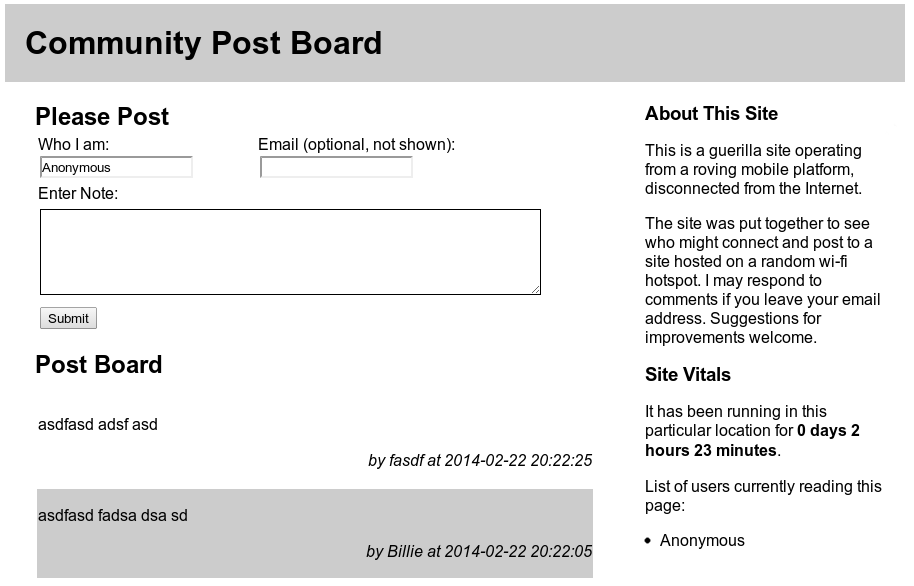Who else does? I set out to find out. I built a WiFi hotspot that served up an open-to-everyone community wall.